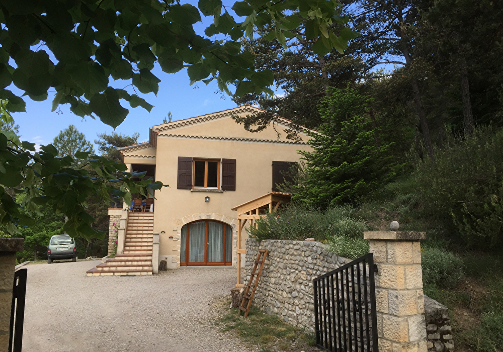 In rustige omgeving tussen velden en heuvels, huis in de stijl van een Provençaalse villa, kamer op de begane grond met eigen ingang en terras. Grenoveerd met voornamelijk duurzame materialen. Op 500 meter van het dorp.