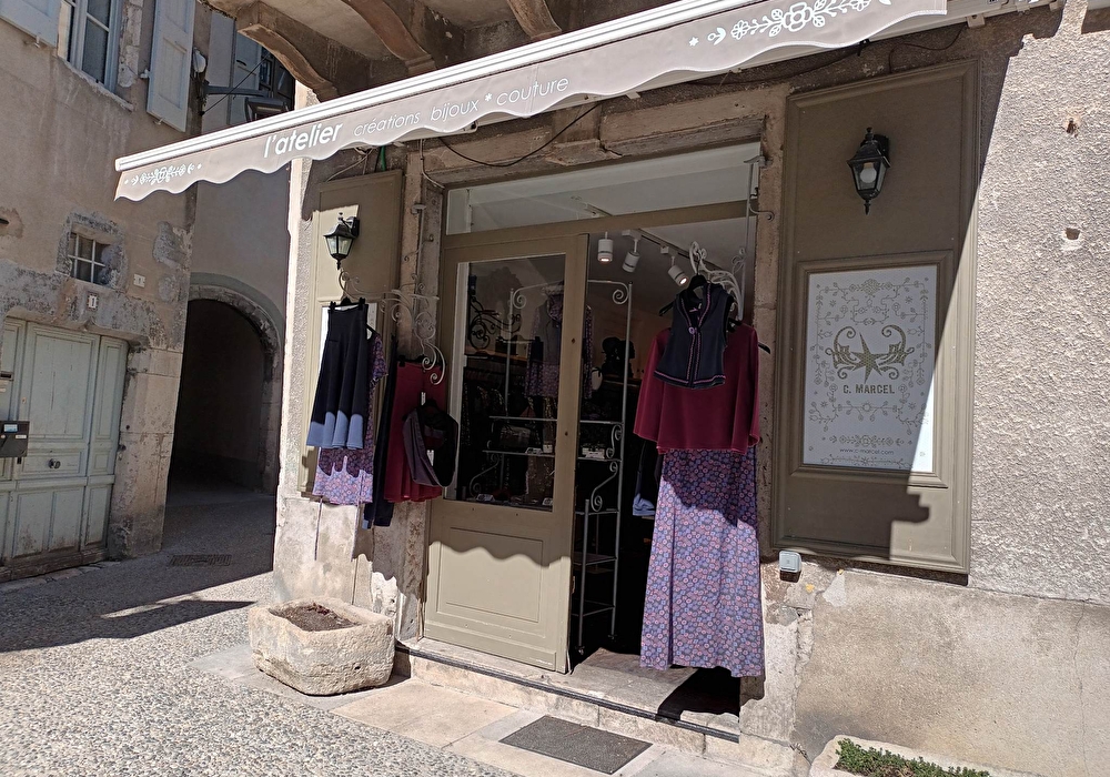 Kleine werkplaats tegenover de kathedraal van Die, damesconfectie C-Marcel (fleece jassen, jersey jurken, molton pantalons...).