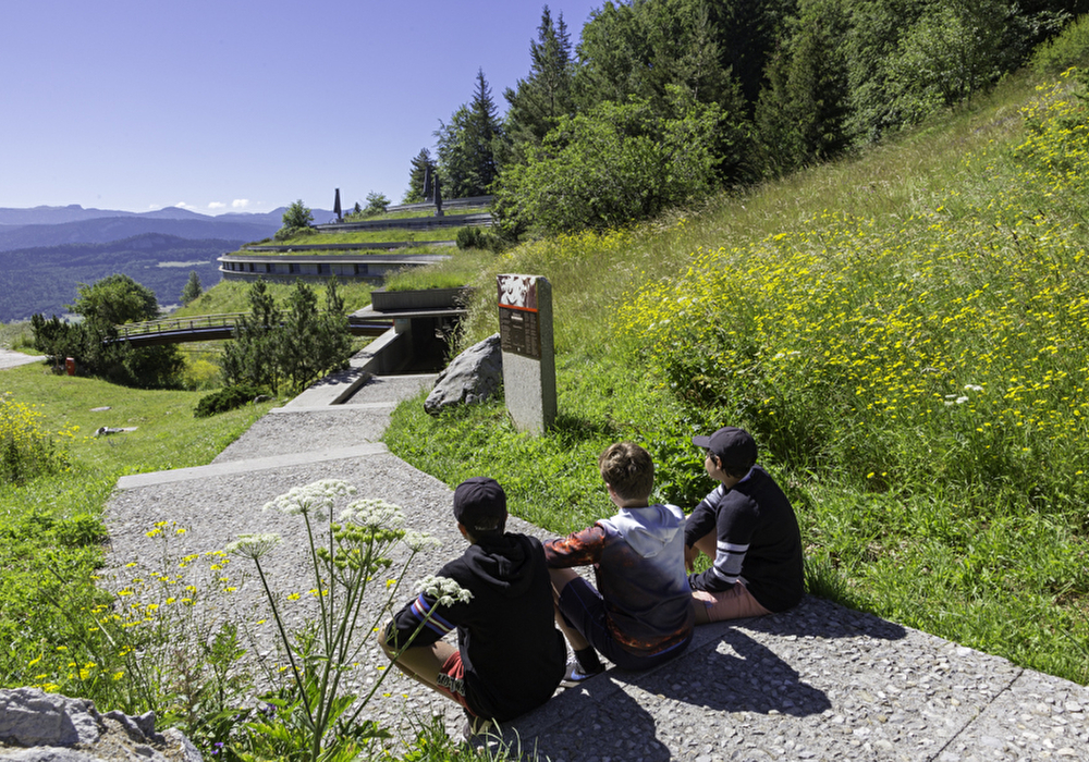 Situé sur le Col de la Chau, face aux crêtes des Hauts Plateaux, le Mémorial est une forteresse à l'image de la citadelle naturelle du Massif du Vercors.