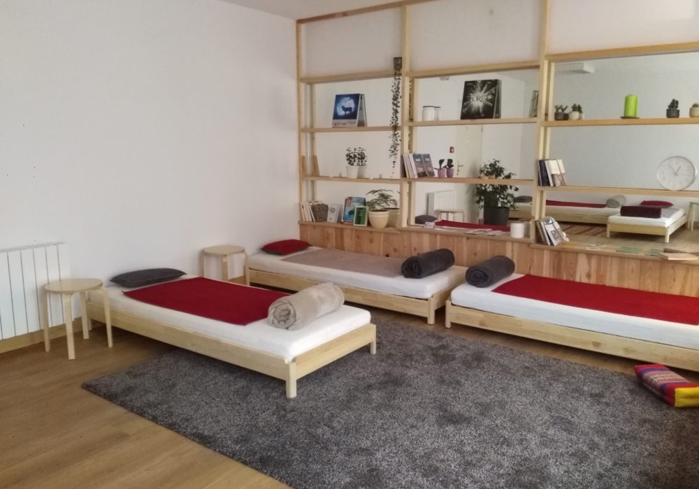 For hire: a 40m² activity room, ideal for voice or body work and 1 fully equipped massage rooms (please contact us for the monthly rate).