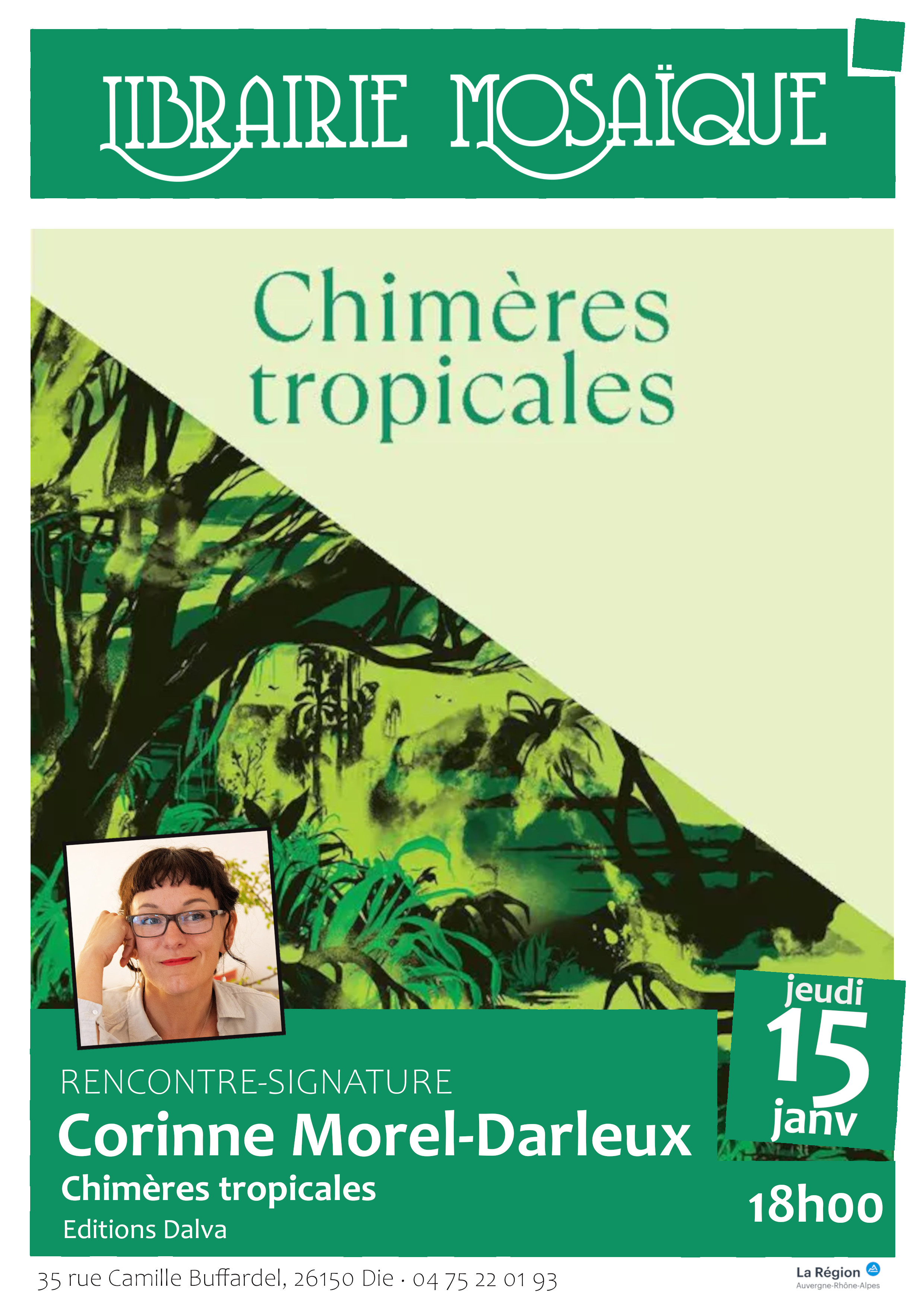 Corinne viendra nous présenter et fêter la sortie officielle de son nouveau roman « Chimères tropicales » paru aux éditions Dalva !