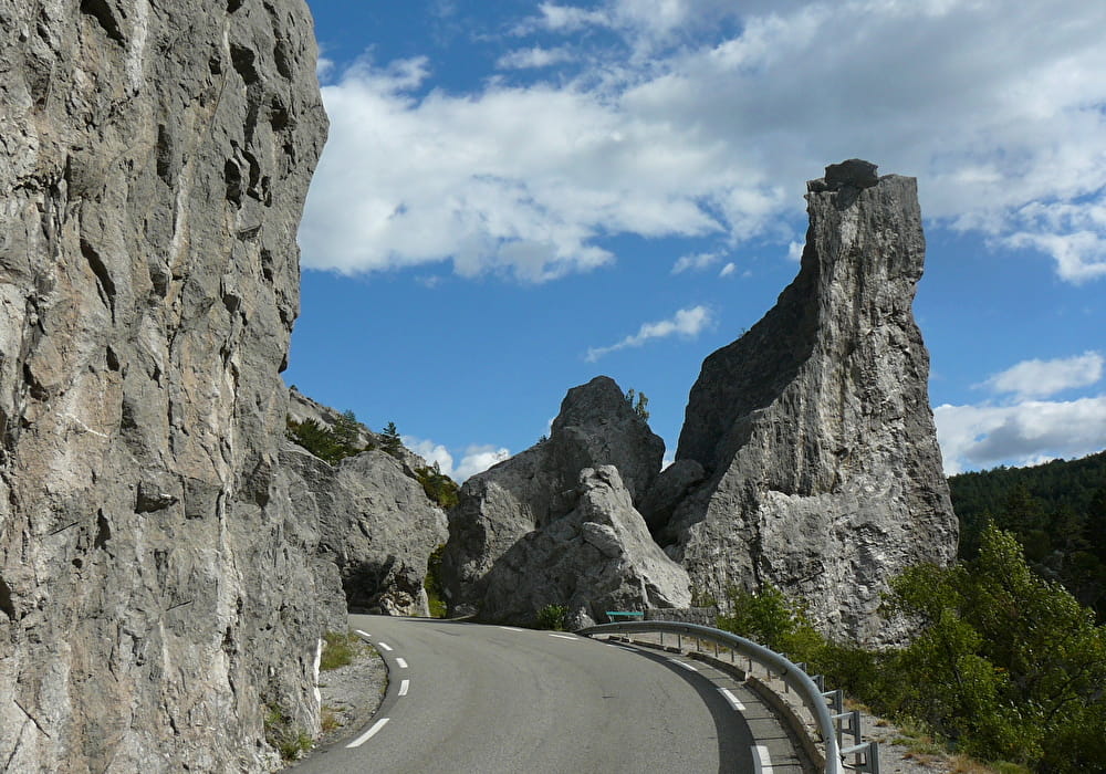 1/ Rejoindre le point d’information touristique (815 m) et arriver au niveau du pont du la Drôme. Poursuivre tout droit par la D 806. Laisser le village à droite et descendre par la route à gauche.