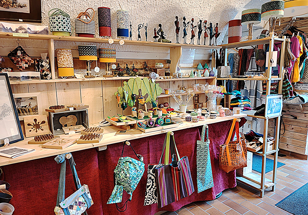 Boutique artisanal avec des pièces uniques d'une trentaine de créateurs locaux, d'accessoires de sports et vêtements outdoor et location de raquettes et VTT classique où AE (réparation et vente accessoires) .