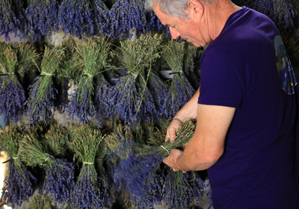 * Culture de la lavande et du lavandin : Nous cultivons différentes variétés de lavandes et de lavandins sur une trentaine d'hectares, maîtrisant ainsi l'ensemble du processus, de la plantation à la récolte.