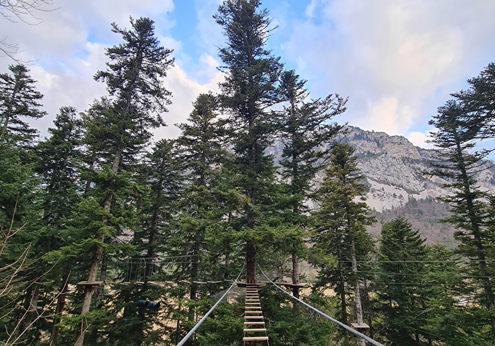 Un parcours accompagné original dans une forêt de sapins entre 10 et 15 mètres de haut, avec passages sur cordes, rondins, bidon, filets, mini via ferrata et tyroliennes. Sur place saut pendulaire de 20 mètres de haut et un parcours sensoriel !