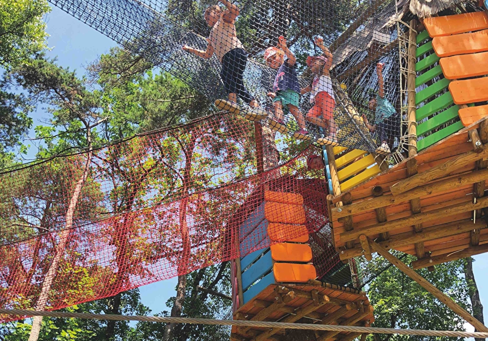 - Sentier de filets en hauteur entre 3 et 10 m de haut, entouré de mers de filet avec des jeux d'équilibre, qui s'effectue sans baudriers, ni matériel spécifique. Les 9 cabanes perchées permettent aux enfants de découvrir la faune du parc naturel régional du Vercors (castors, loups, pic verts...) et la descente s'effectue par des toboggans géants (jusqu'à 16 m).