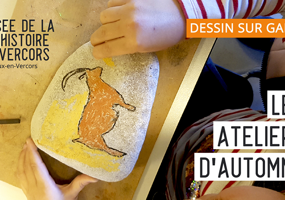 Quand nous dessinions dans les grottes et décorions les galets à l'aide de charbon et d'ocres... de précieuses indications sur le mode de vie de nos ancêtres ! Les participants choisissent un animal, s'exercent à maîtriser le trait (pochoirs mis à disposition) puis ornent leur galet avec un morceau de fusain et des craies d'ocre. Les artistes repartent avec leur galet, le fusain et les craies.