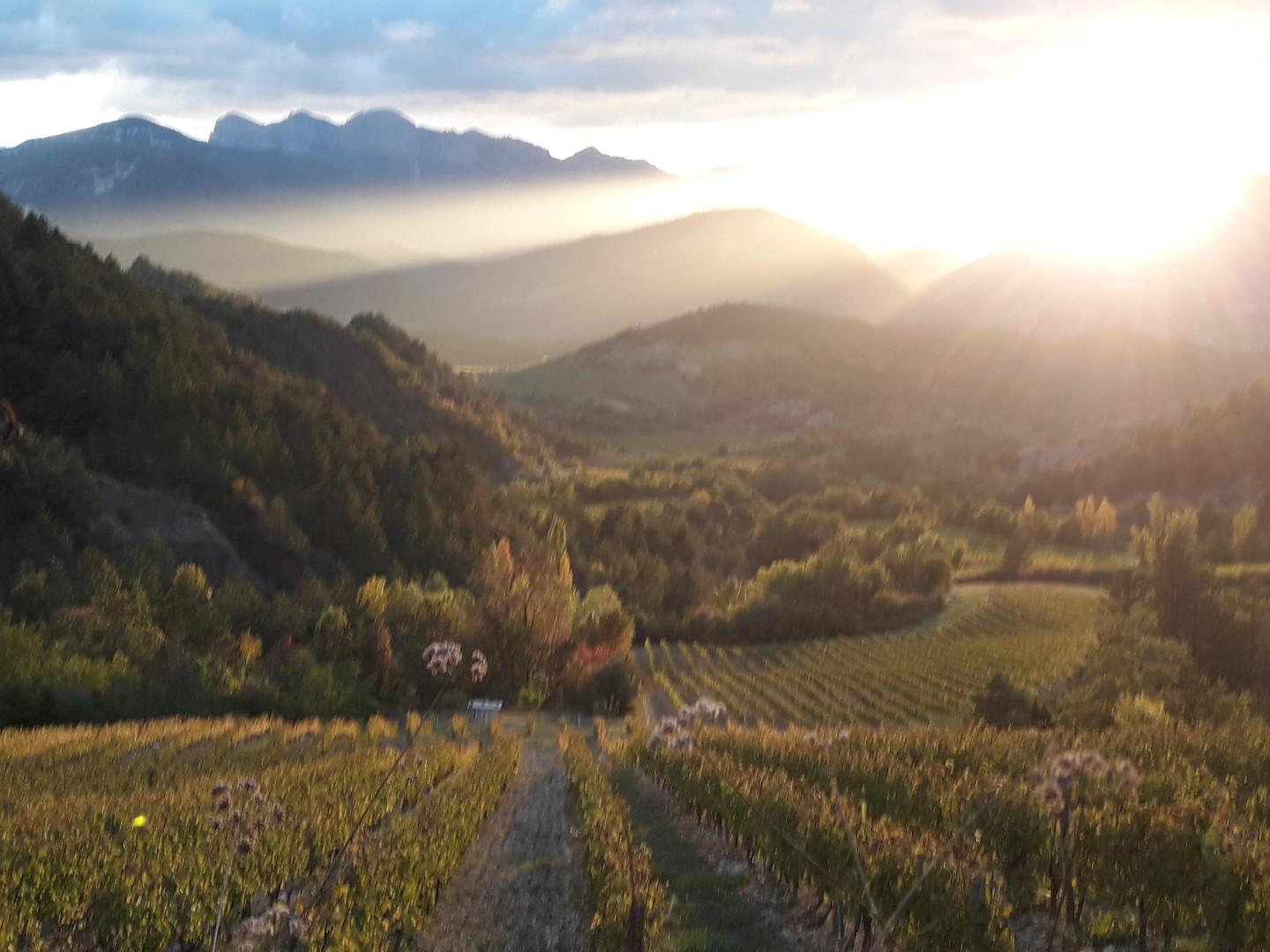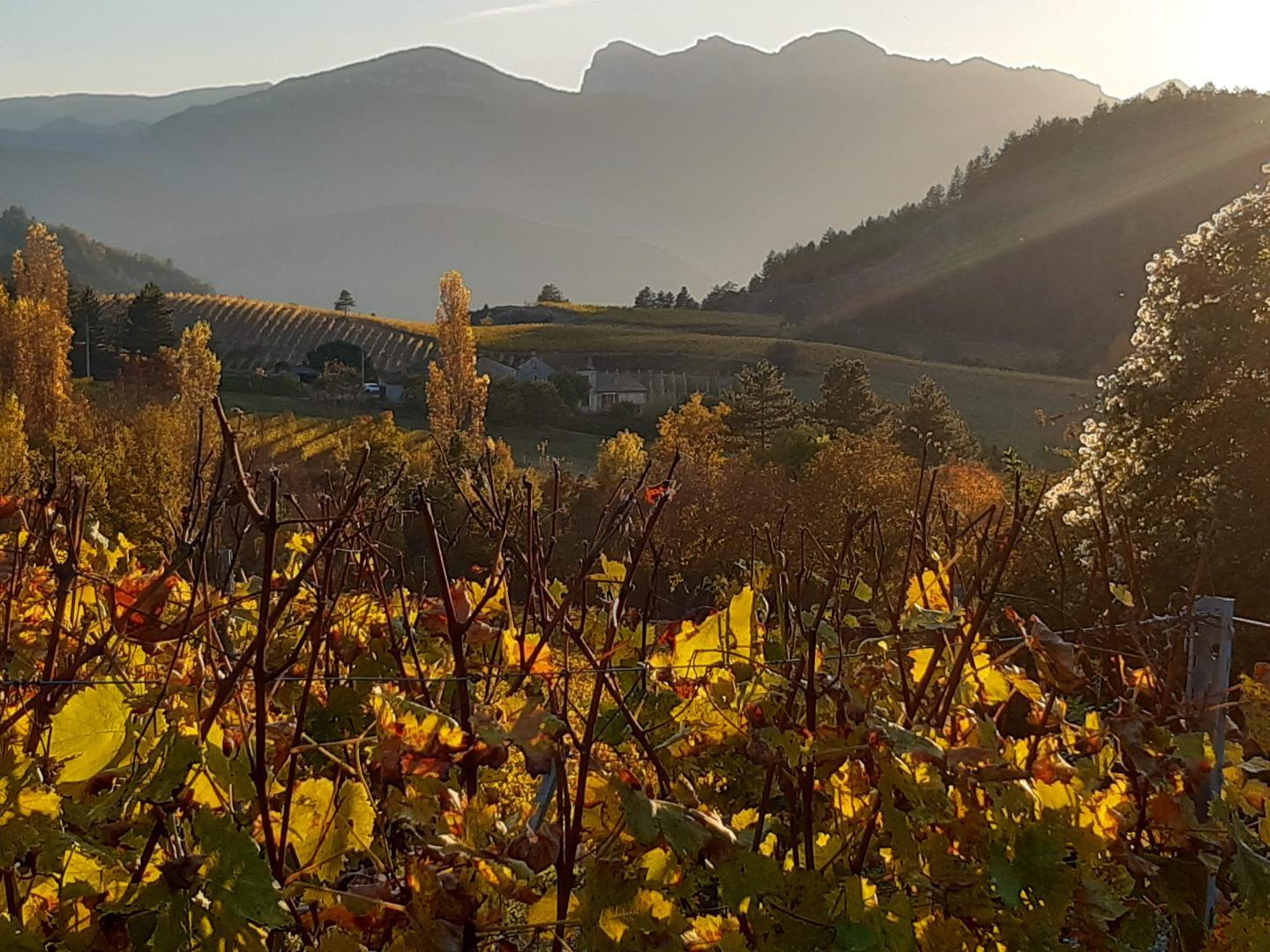 In een gehucht buiten het dorp, tussen de wijngaarden van de Clairette de Die, uitzicht op de bergen Les Trois Becs, niet-vrijstaand huis met eigen ingang en eigen terras. Rust, natuur, activiteiten in de natuur, kanoën en zwemmen in de buurt.