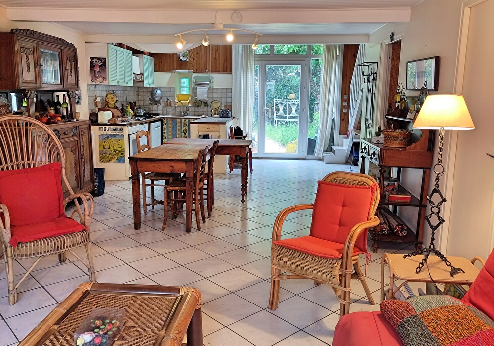 Gelijkvloerse woning met mezzanine, kleine tuin op het noorden en terras op het zuiden met uitzicht op de bergen. Grote woonkamer met keuken, eetkamer en zitkamer. 1 slaapkamer met tweepersoonsbed, badkamer en aparte WC. Gratis parkeergelegenheid voor het huis.