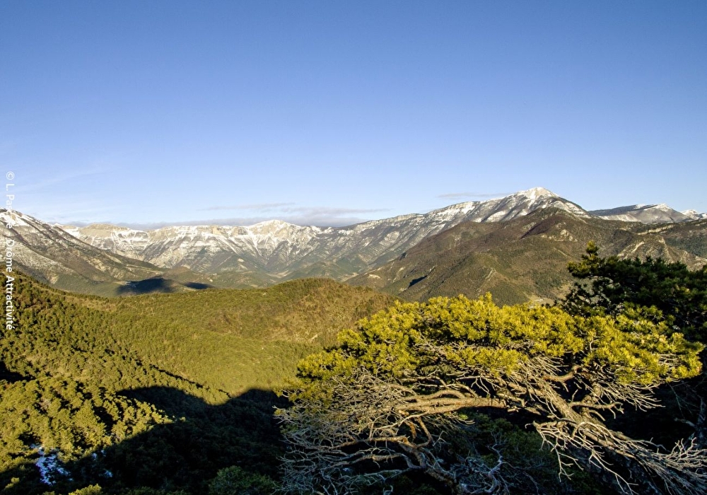 Een discreet pad baant zich een weg door mergel en dennenbossen naar de wilde heuvelrug die de valleien van de Gervanne en de Quint doorkruist, met de rand van het plateau van de Vercors als gezelschap terwijl je door stenen dorpjes ...