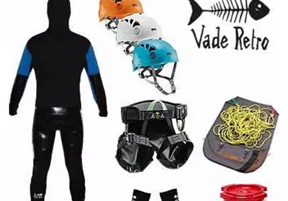 Verhuur van canyoningmateriaal: wetsuit (Vade Retro 5 mm, een of tweedelig), helmmaat vanaf 8 jaar.