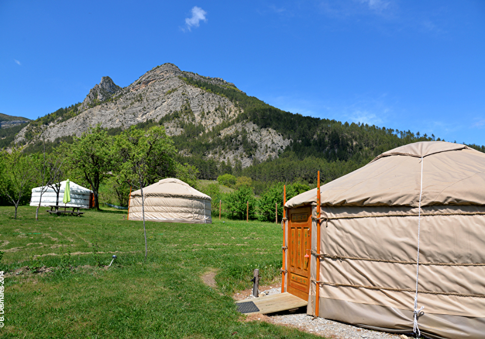3 Mongoolse joerten bij een oude boerderij op 5 kilometer van Die in een ongerepte natuur aan een beek. Uitzicht op het bos van Justin en de Glandasse. Ideaal voor een originele vakantie met je partner, gezin of vriend(inn)en.