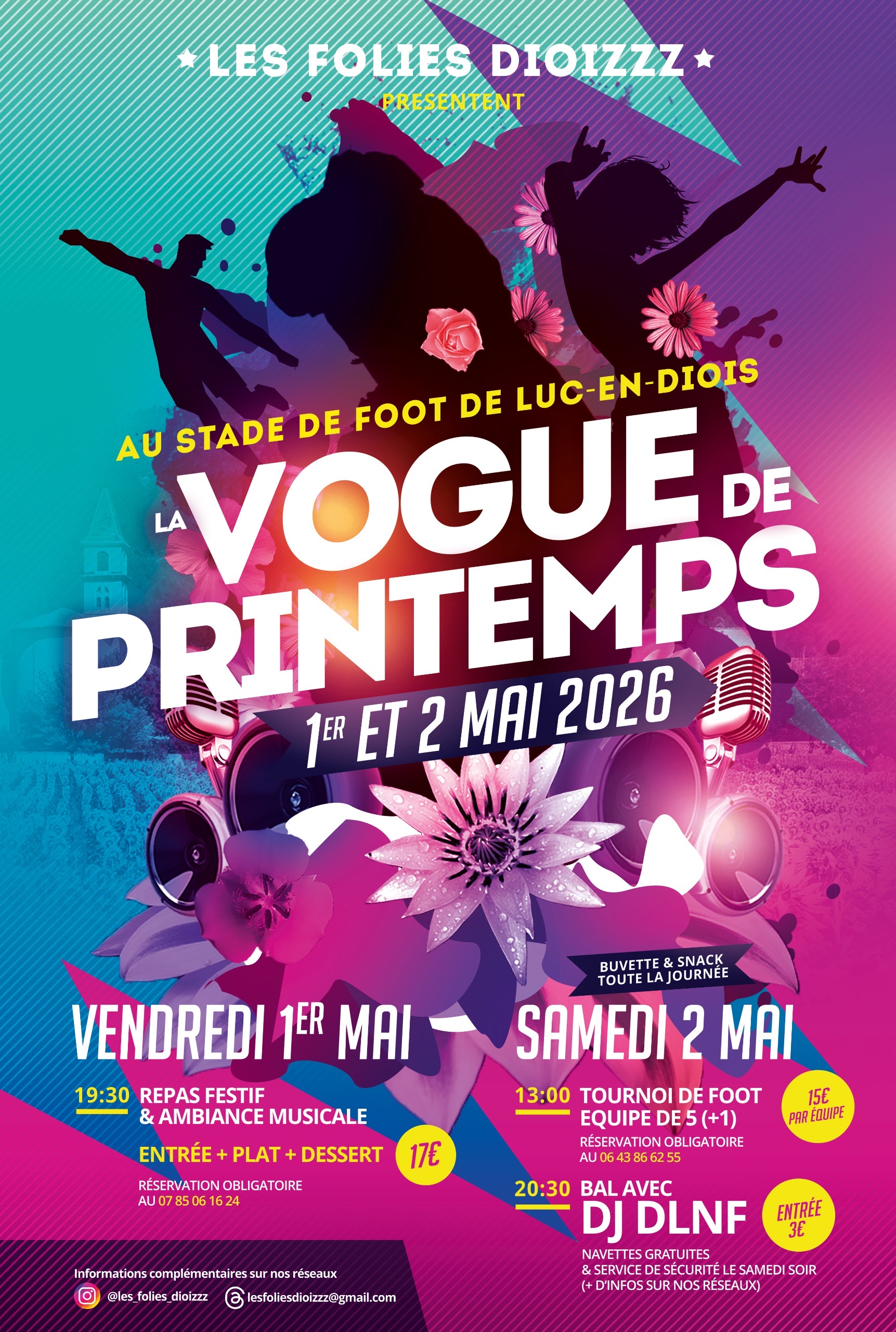 Vogue de Printemps organisée par la nouvelle association, Les Folies Dioizzz, repas convivial et festif, tournoi de foot, et bal vous attendent pour ce weekend ! Réservation obligatoire pour le repas