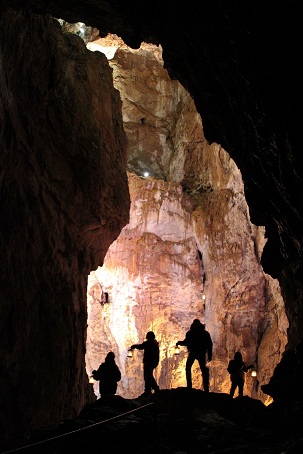 Comment mieux pénétrer dans les mystères de la Grotte de la Luire qu'en faisant la marche d'approche de nuit dans la forêt et l'entrée sous le porche spectaculaire à la lumière dansante des flambeaux?