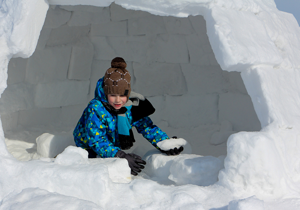 Let's head off into the forest to build our pretty snow house, trapper-style, using Inuit techniques.
