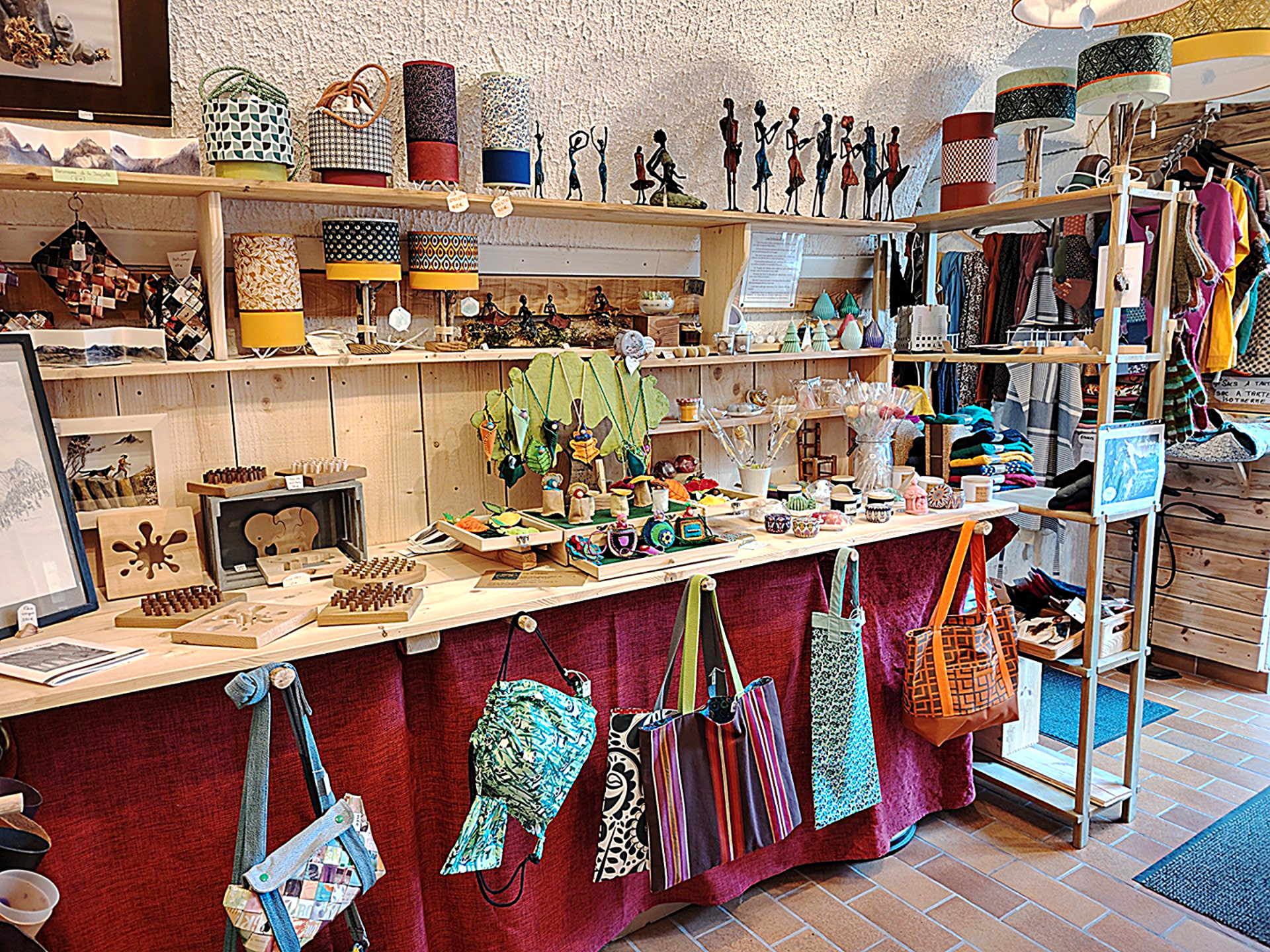 Boutique artisanal avec des pièces uniques d'une trentaine de créateurs locaux, d'accessoires de sports et vêtements outdoor et location de raquettes et VTT classique où AE (réparation et vente accessoires) .