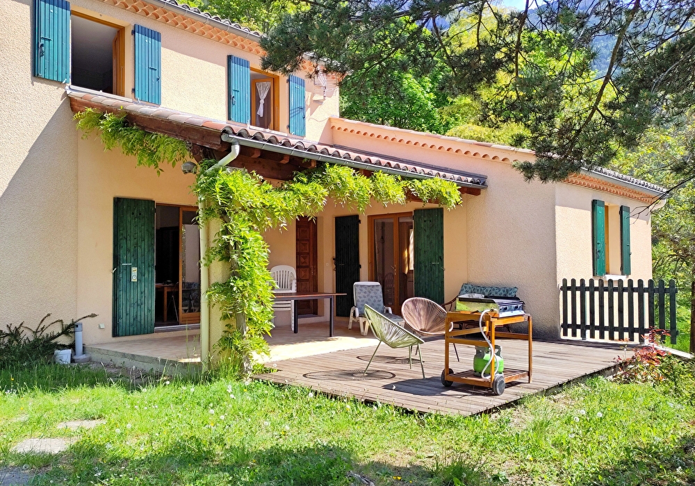 Maison pour 10 personnes avec grand terrain arboré et vu imprenable de la terrasse sous la glycine, accessible par un escalier. A quelques pas du centre bourg, de ses commerces et activités, idéal pour se ressourcer au calme et dans la verdure.