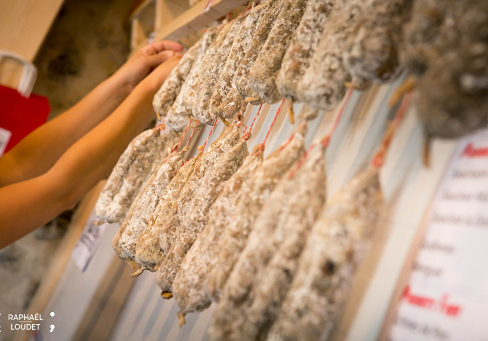 Ambachtelijke werkplaats voor de verwerking van vlees en boerderijproducten en winkel waar deze producten en die van boerderijen uit de buurt verkocht worden (korte keten).