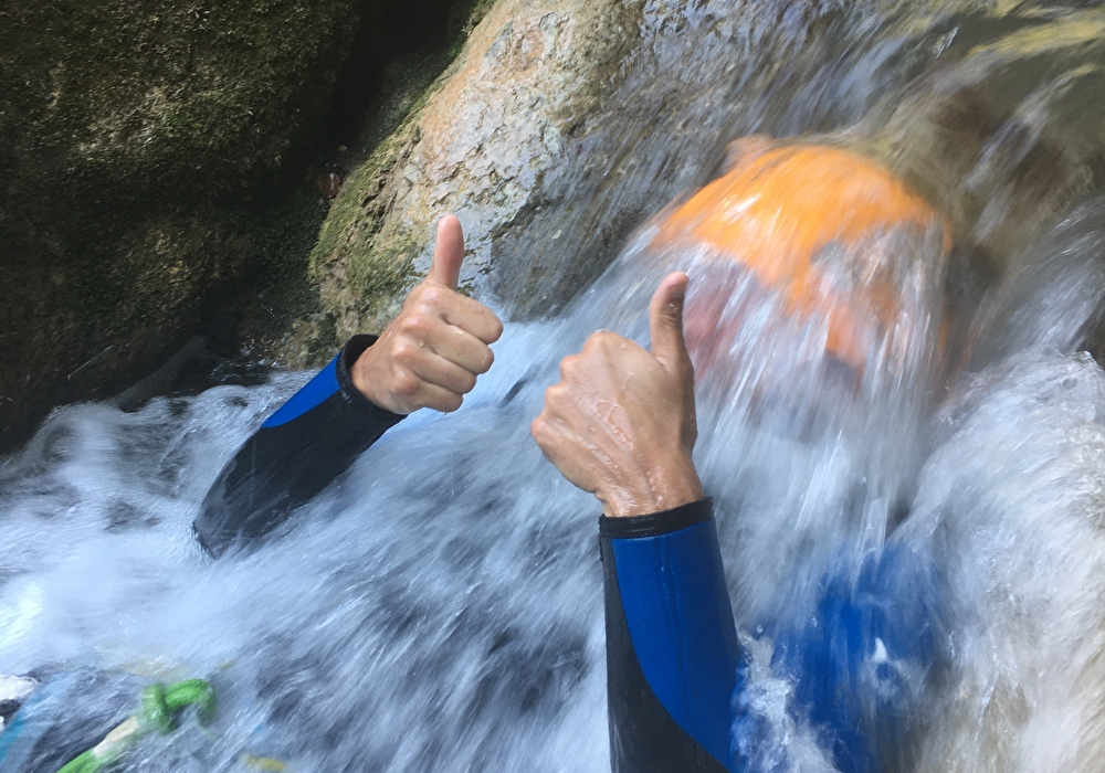 Een prachtig riviertje om met het hele gezin af te zakken, met sprongen en glijbanen op het programma!